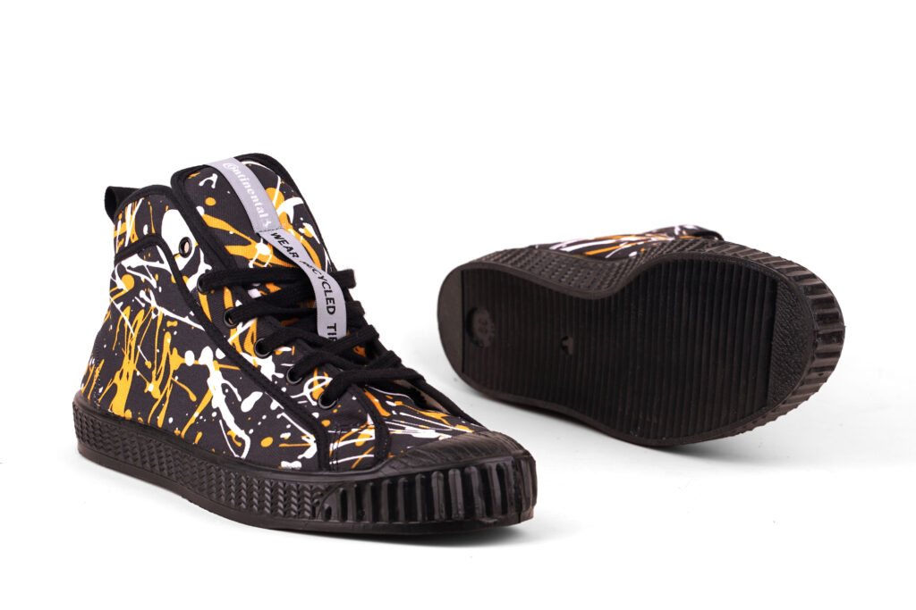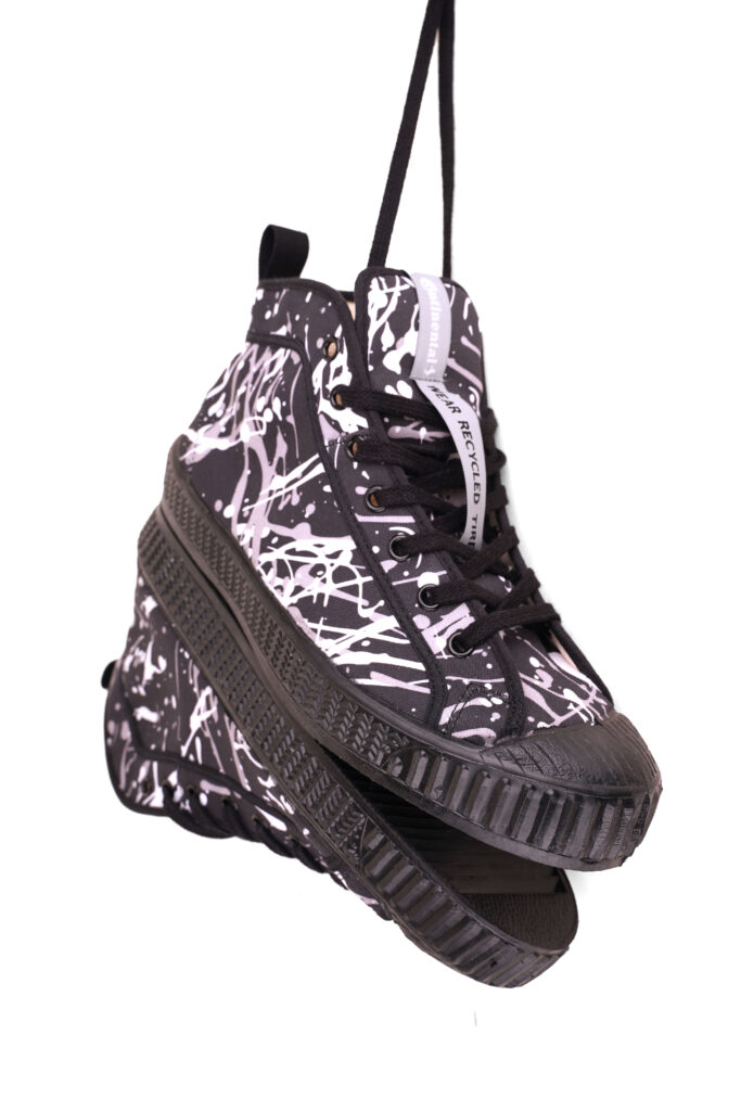 Tenisky z pneumatik nejen snižují množství odpadu na skládkách, ale i šetří přírodní zdroje. A jakmile doslouží? Můžeš je vrátit a recyklace začne nanovo. To vše navíc díky lokální výrobě – guma se drtí v Uherském Brodě, zpracovává se v Otrokovicích a finálně se tenisky kompletují v Partizánském. Žádné zbytečné cestování přes půl světa.